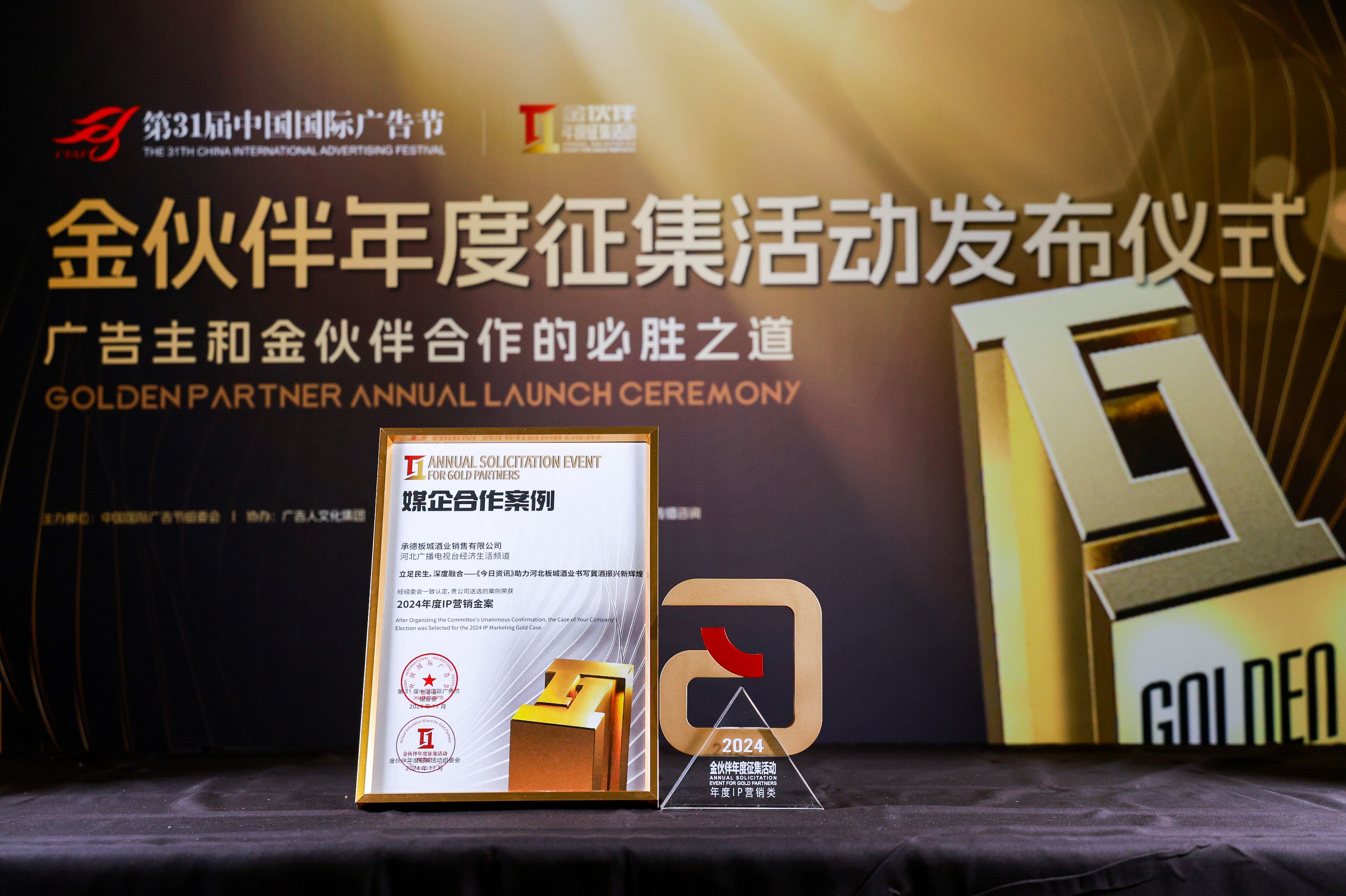 板城酒業(yè)與河北經(jīng)濟生活頻道合作案例【立足民生,深度融合《今日資訊》助力板城酒業(yè)書寫冀酒振興新輝煌】入選31屆中國國際廣告節(jié)·2024廣告主金伙伴年度征集發(fā)布儀式·媒企合作案例·年度IP營銷金案;