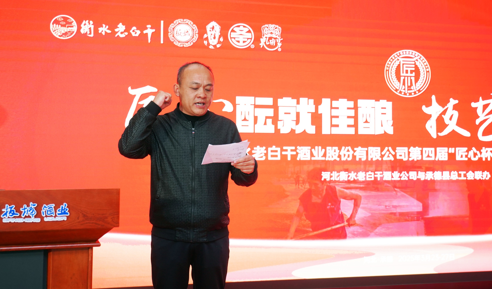 承德縣總工會(huì)黨組書記、常務(wù)副主席溫明忠在活動(dòng)中致辭,他講到:“此次‘匠心杯’釀酒職業(yè)技能大賽,是老白干酒業(yè)集團(tuán)為旗下五家酒業(yè)公司的‘技能大師’們搭建的切磋技藝、展示風(fēng)采、傳承精神的廣闊舞臺(tái)。每一位參賽選手都是各自企業(yè)的佼佼者,他們帶來的不僅是精湛的釀酒技藝,更是對(duì)釀酒事業(yè)的無限熱愛與執(zhí)著追求。通過這場比賽,大家相互學(xué)習(xí)、相互交流,在競爭中進(jìn)步,在切磋中成長,必將推動(dòng)酒行業(yè)整體水平的大幅提升。希望以此次大賽為新的起點(diǎn),進(jìn)一步弘揚(yáng)工匠精神,加強(qiáng)技術(shù)創(chuàng)新與研發(fā),為消費(fèi)者釀造出更高品質(zhì)的美酒,為中國酒業(yè)的發(fā)展注入新的活力。”