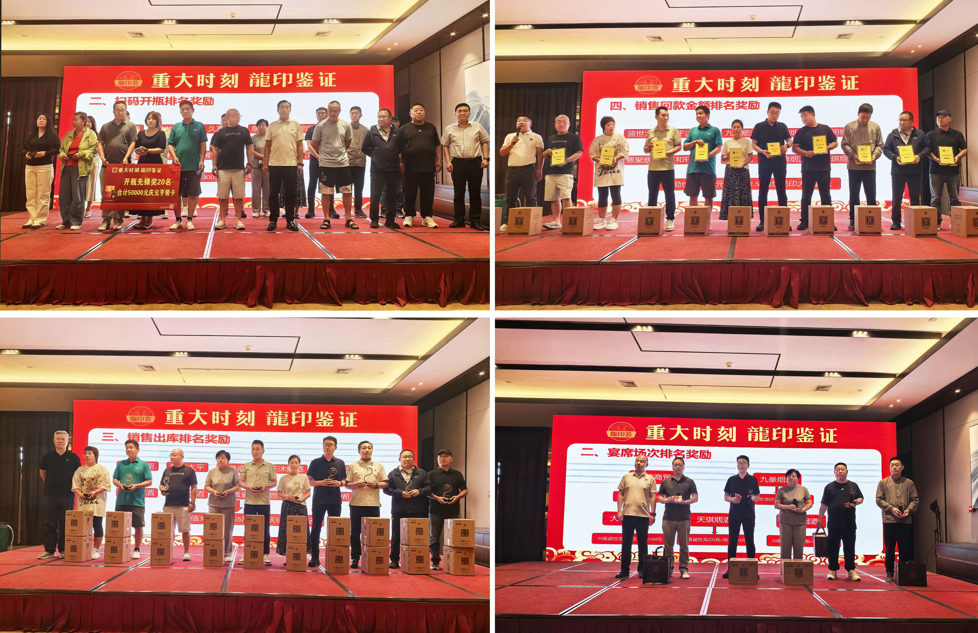 為感謝經(jīng)銷商伙伴長(zhǎng)久以來(lái)的支持和貢獻(xiàn),活動(dòng)現(xiàn)場(chǎng)還設(shè)置了頒發(fā)環(huán)節(jié),石家莊戰(zhàn)區(qū)龍印部銷售總監(jiān)孫坤申、恒潤(rùn)德酒類品牌管理有限公司董事長(zhǎng)潘雁群、石家莊戰(zhàn)區(qū)龍印部區(qū)域經(jīng)理徐立國(guó)、恒潤(rùn)德酒類品牌管理有限公司龍印事業(yè)部經(jīng)理張?jiān)謩e為開瓶率、履約、回款、宴席做出突出貢獻(xiàn)的終端客戶進(jìn)行頒獎(jiǎng)。