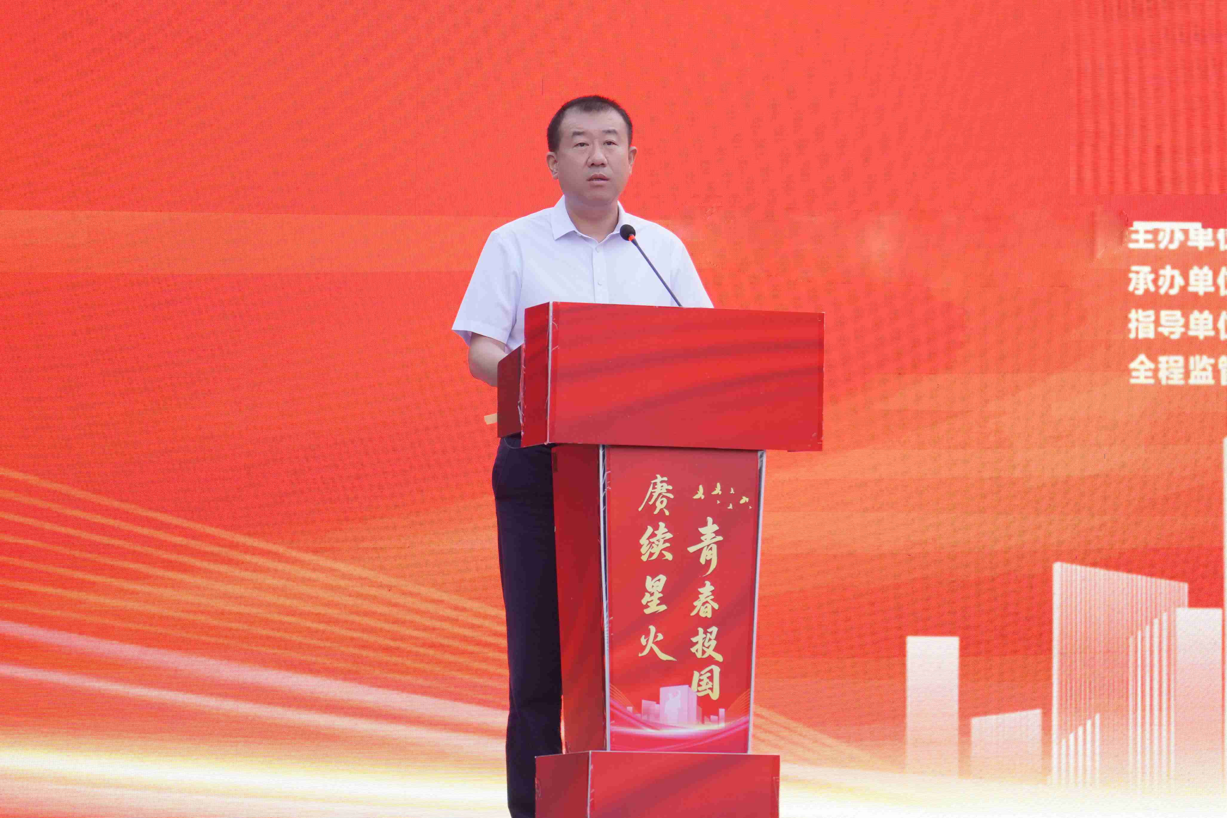 河北廣播電視臺(tái)副總編輯邊宇峰致辭,邊宇峰講到:“作為主流媒體、責(zé)任擔(dān)當(dāng),河北廣播電視臺(tái)始終與時(shí)代同行,與人民同向。值此抗戰(zhàn)勝利八十周年,我們賦予本屆活動(dòng)深沉的主題——‘賡續(xù)星火青春報(bào)國(guó)’這不僅是一次助學(xué)行動(dòng),更旨在為學(xué)子注入時(shí)代精神與國(guó)際視野,將個(gè)人理想熔鑄于民族復(fù)興的壯闊征程。讓我們攜手并肩,讓助學(xué)‘星火’代代相傳,照亮青春夢(mèng)想,共繪時(shí)代華章!”