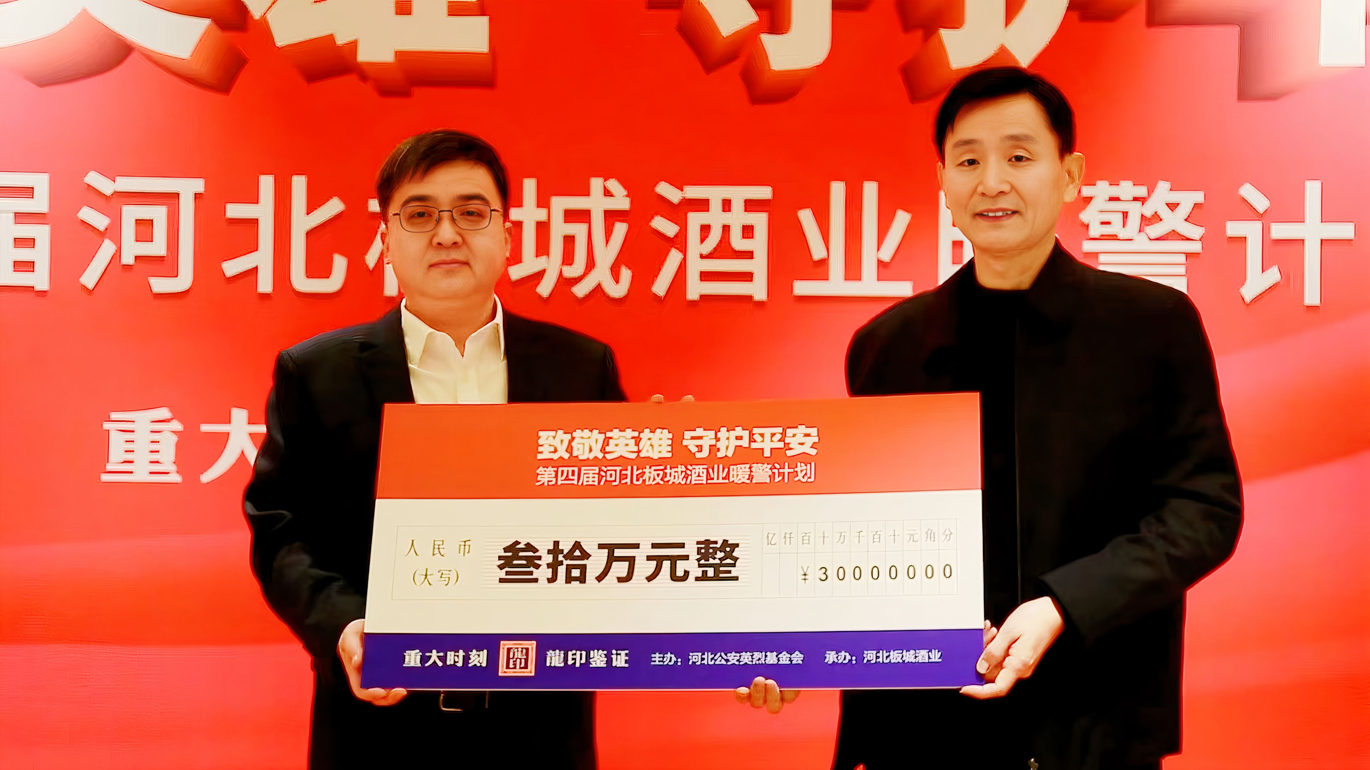 板城酒業(yè)連續(xù)四年開展暖警活動,本次活動中,板城酒業(yè)向河北省公安英烈基金會捐贈30萬元暖警公益基金,其中15萬用于致敬幫扶英烈個人與英烈集體;15萬元用于2025年第三期英烈子女夏令營活動。